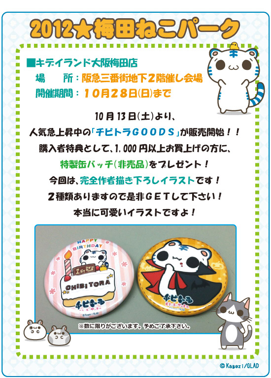 チビトラグッズが、キデイランド大阪梅田店で販売されます。