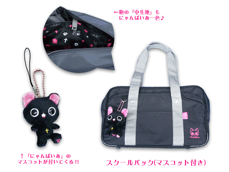 にゃんぱいあのスクールバッグが登場!なんと「にゃんぱいあ」のマスコットが1つ付いています♪