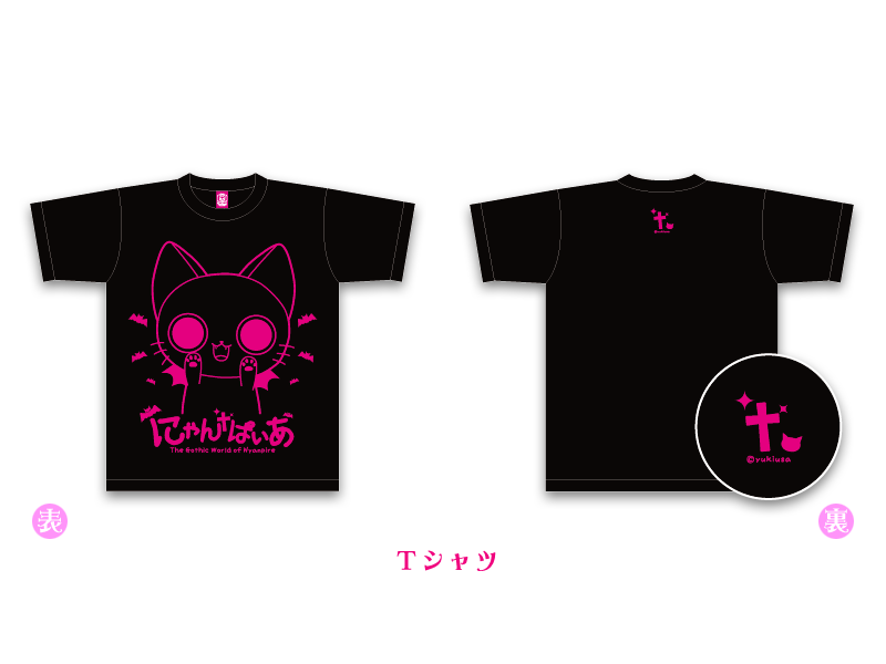にゃんぱいあがプリントされたTシャツ。カラーもブラックとピンクの2色から選んでいただけます。