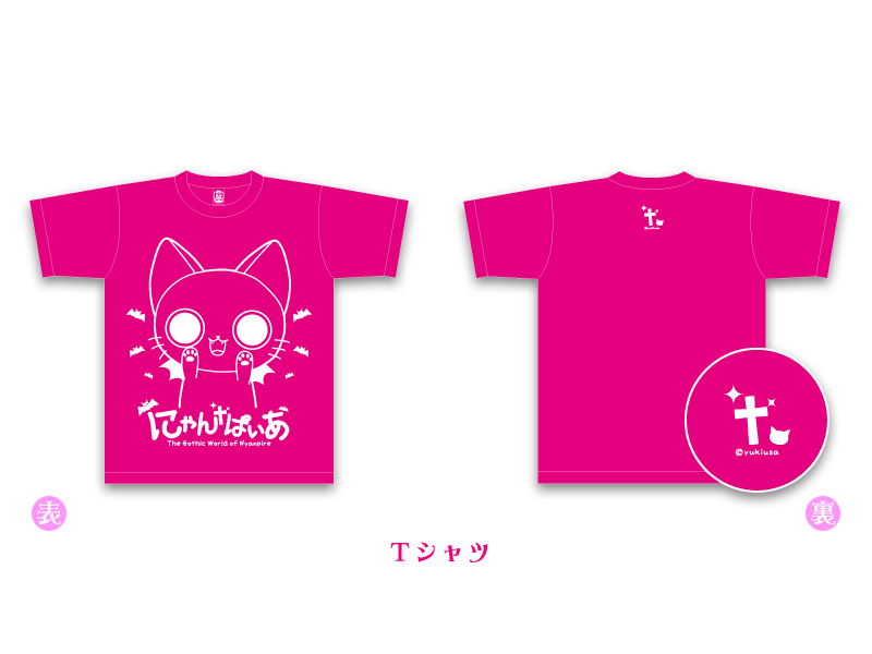 にゃんぱいあがプリントされたTシャツ。カラーもブラックとピンクの2色から選んでいただけます。