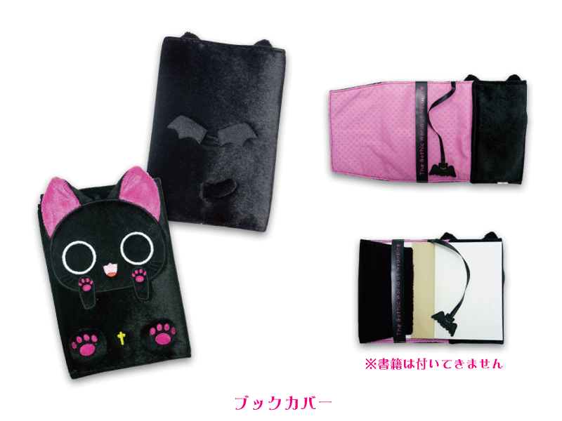 文庫本サイズのにゃんぱいあブックカバーの登場です!コウモリのしおりがとてもかわいいです♪大切な本と共にカバンの中に忍ばせて下さい。