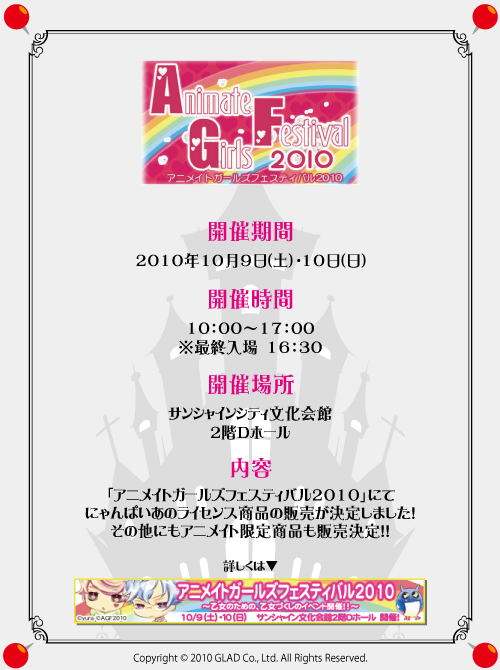 ・アニメイト主催イベント『アニメイトガールズフェスティバル2010』ににゃんぱいあ商品の出品が決定!!(※終了しました)