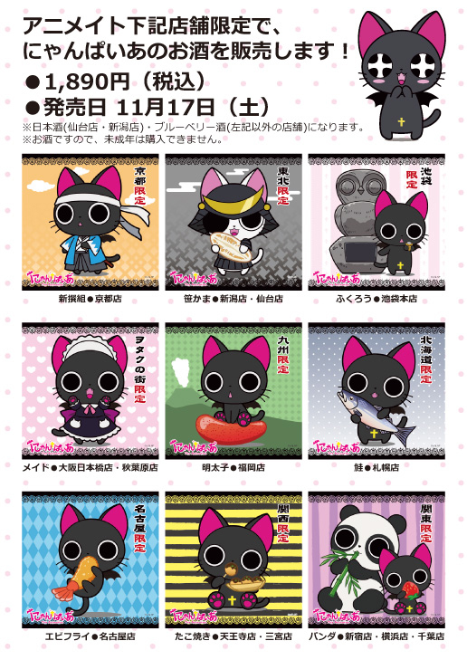 にゃんぱいあのお酒をアニメイトの限定店舗で販売します。